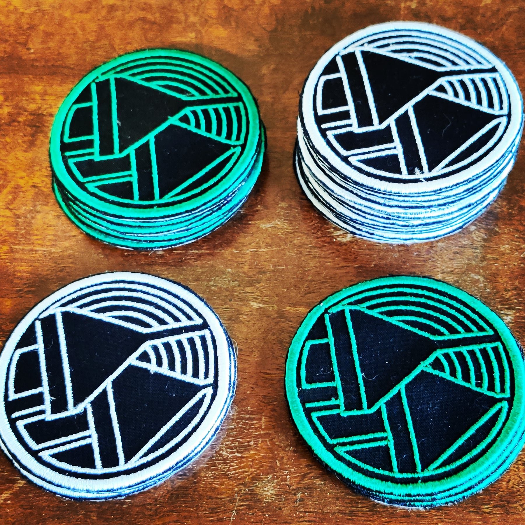 These are embroidered Pepers' Pedals Logo iron on patches. Made right here in my dining room by my lovely wife. They are 75mm round (3") and can be applied to any fabric with the help of an iron.
