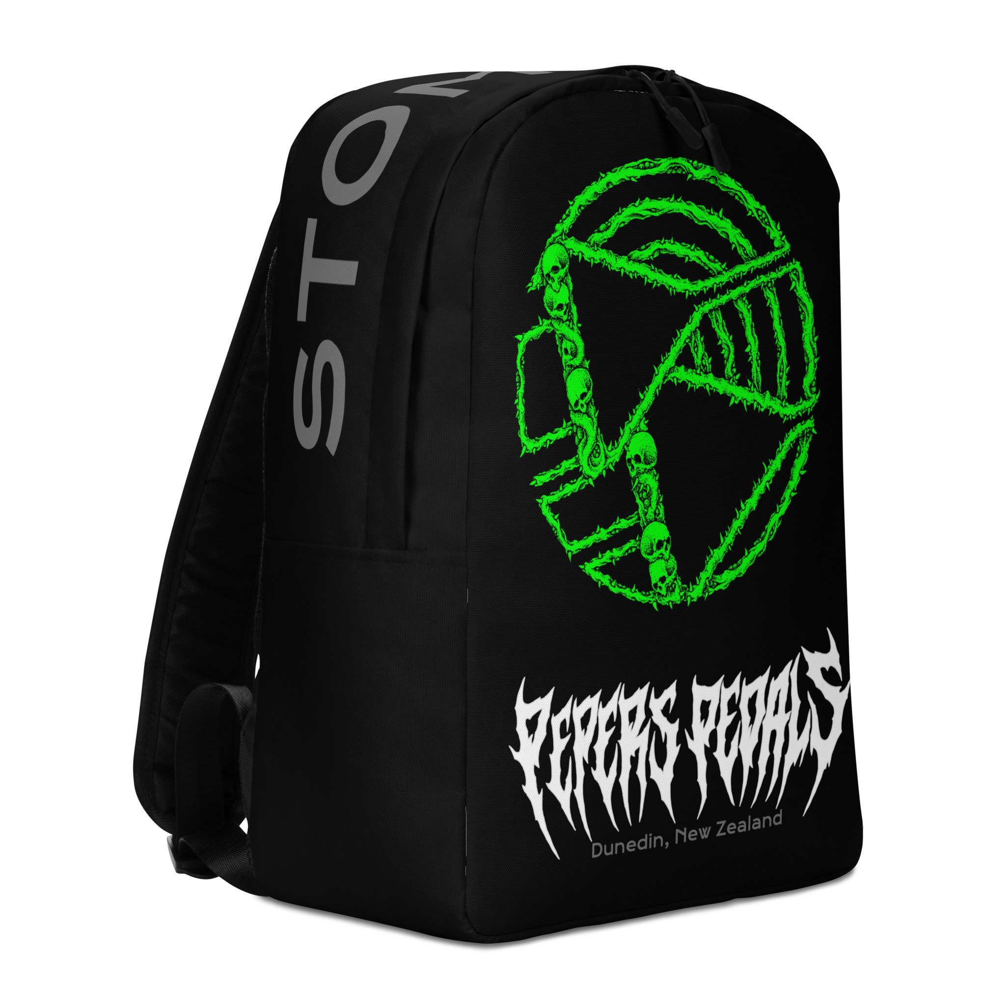Introducing the Pepers' Pedals Stomp Sack. The snazziest guitar pedal adjacent backpack around. Carry all your guitar related stuff and things around in the spacious inside compartment (with a pocket for your laptop), and a hidden back pocket for safekeeping your most valuable items.